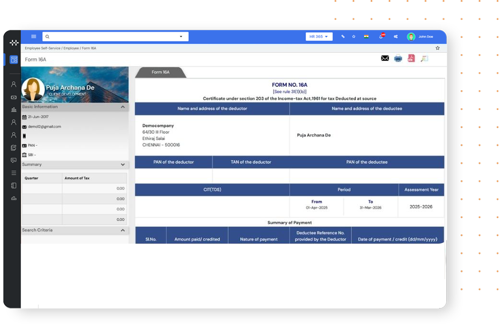 From automated PF, ESI, and TDS calculations to timely filing of compliance reports, HR365 reduces risks of penalties and legal issues.